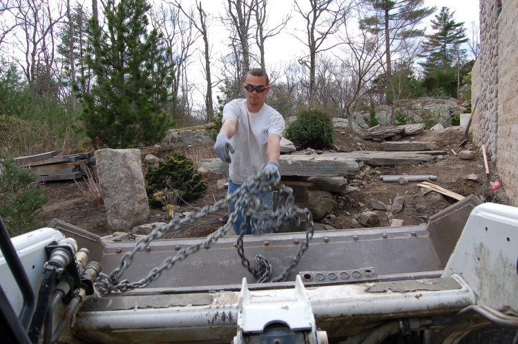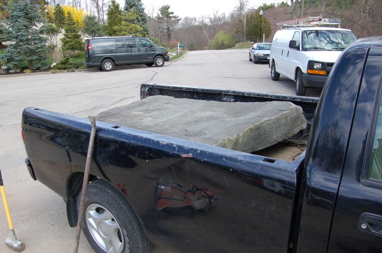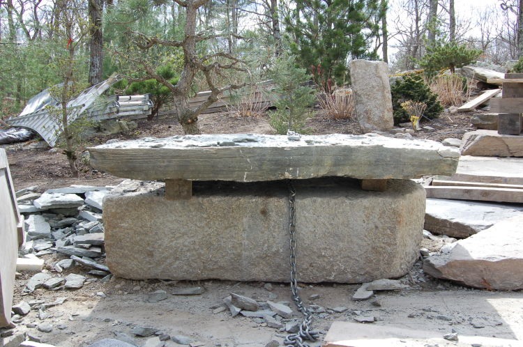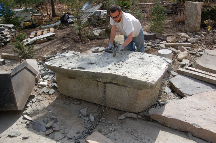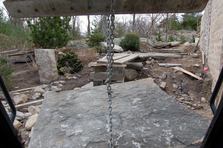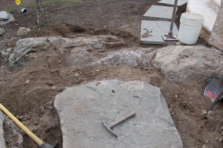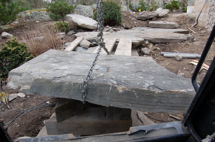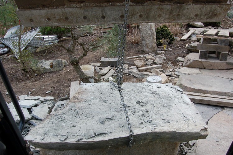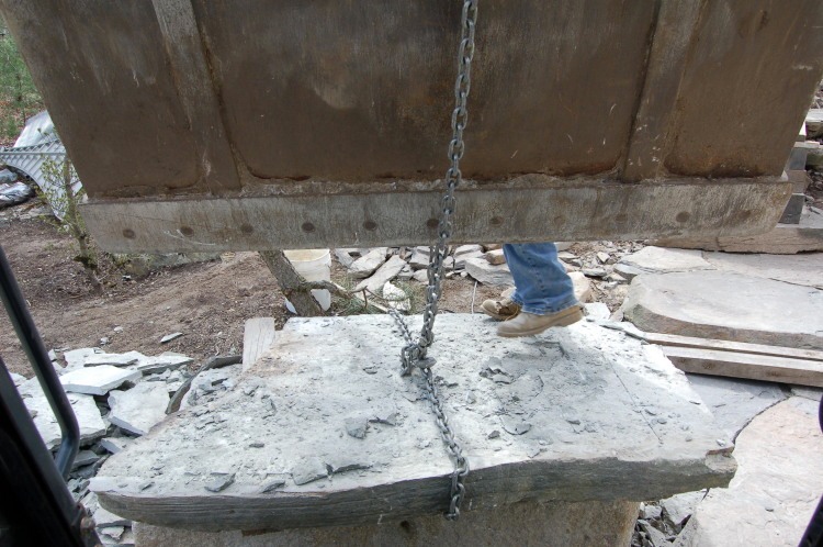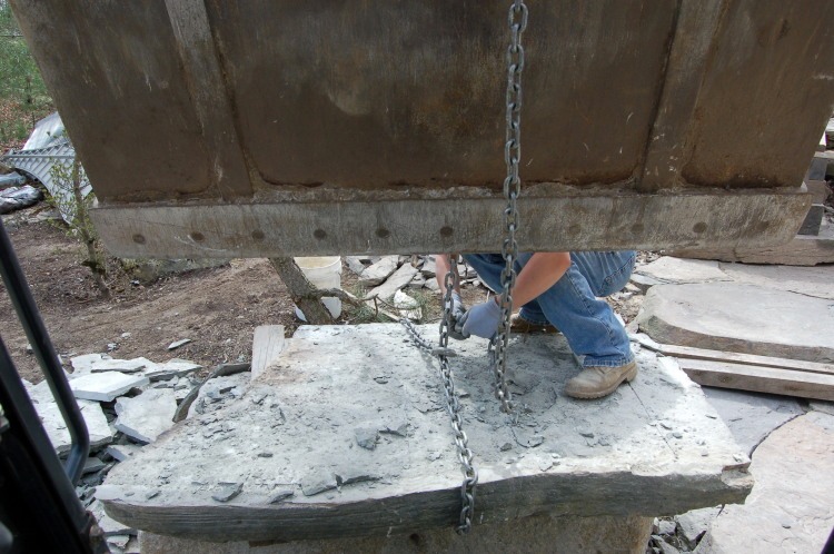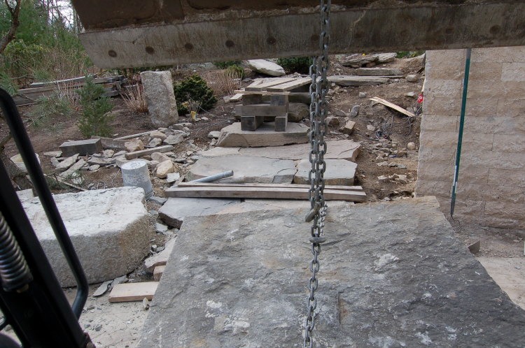 Now we can easily (kind of) roll it in place. This stone weighs in at 1500 lb.