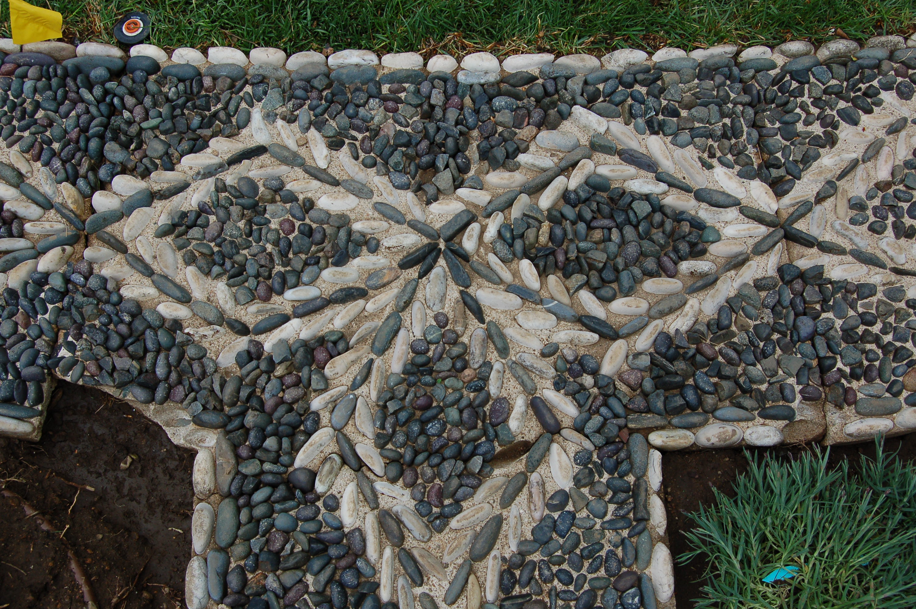 The exquisit pebble mosaic path was overgrown with moss and weeds, tree roots lifted the path in some areas. A considerable amount of pebbles were dislodged and missing.
