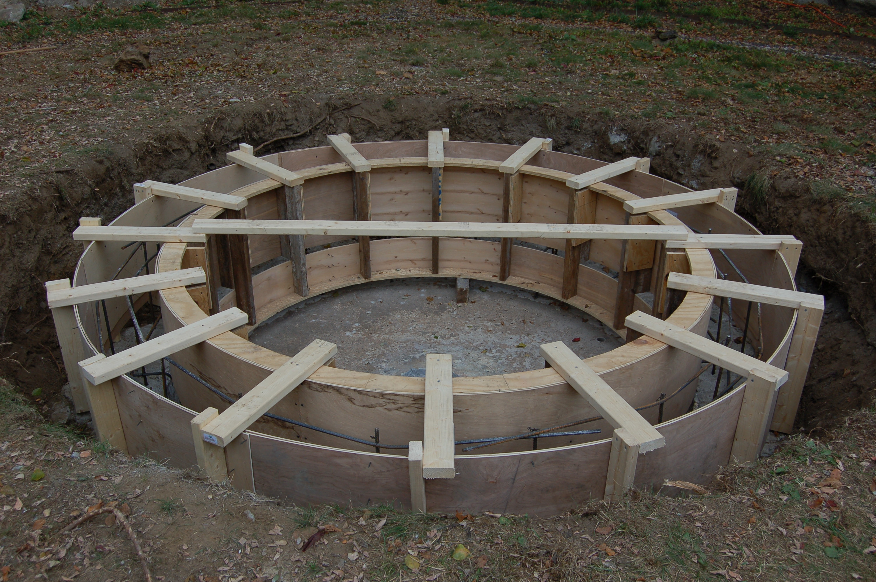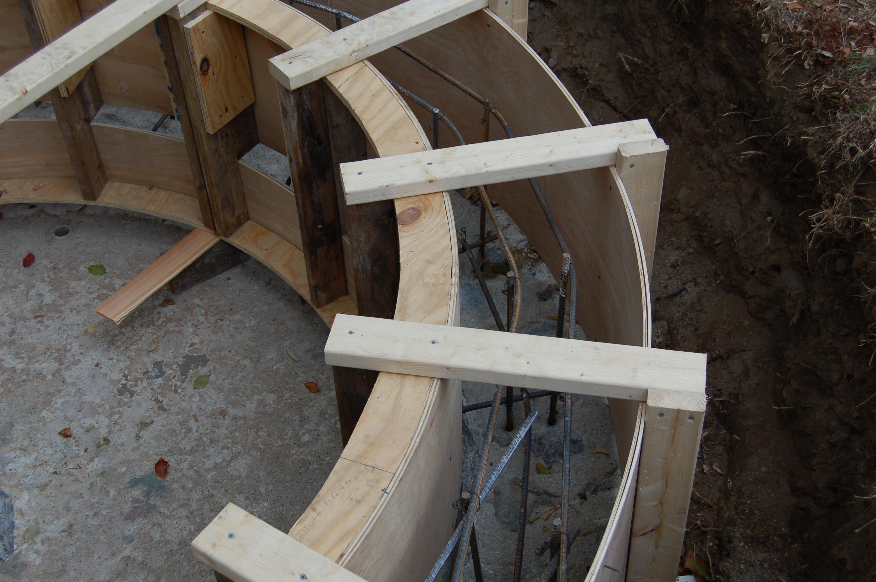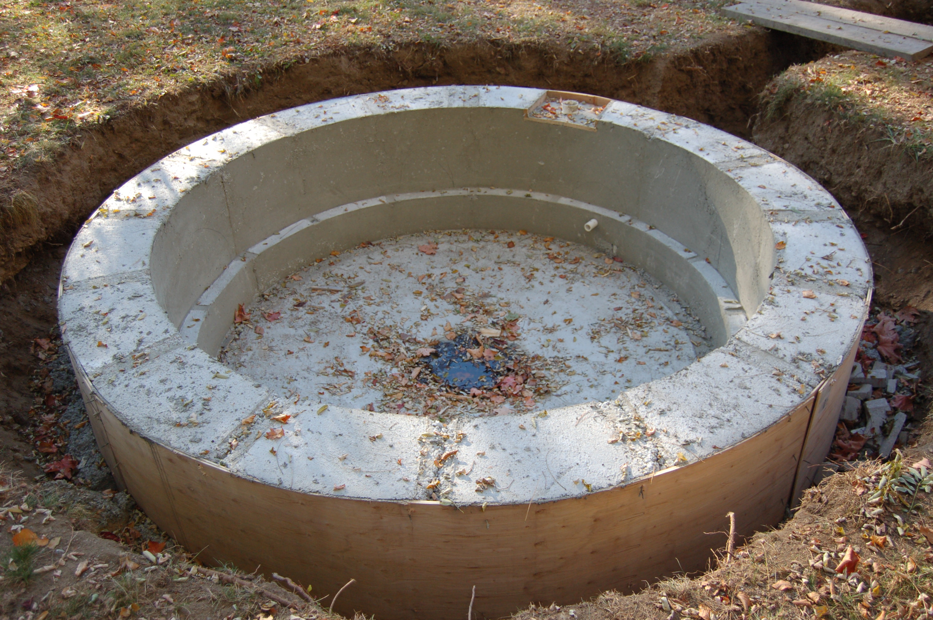 I removed all the compromised concrete just to about 8 inches above the pond floor, chipped away at the inside surface of the remaining vertical wall, roughened the floor and built a form over the original concrete base. My goal was to "encapsulate" the remaining concrete structure maintaining the original size and put back the original granite coping.. I built a custom form, a steel cage was put in place and anchored onto the remaining outer wall and new concrete was poured.