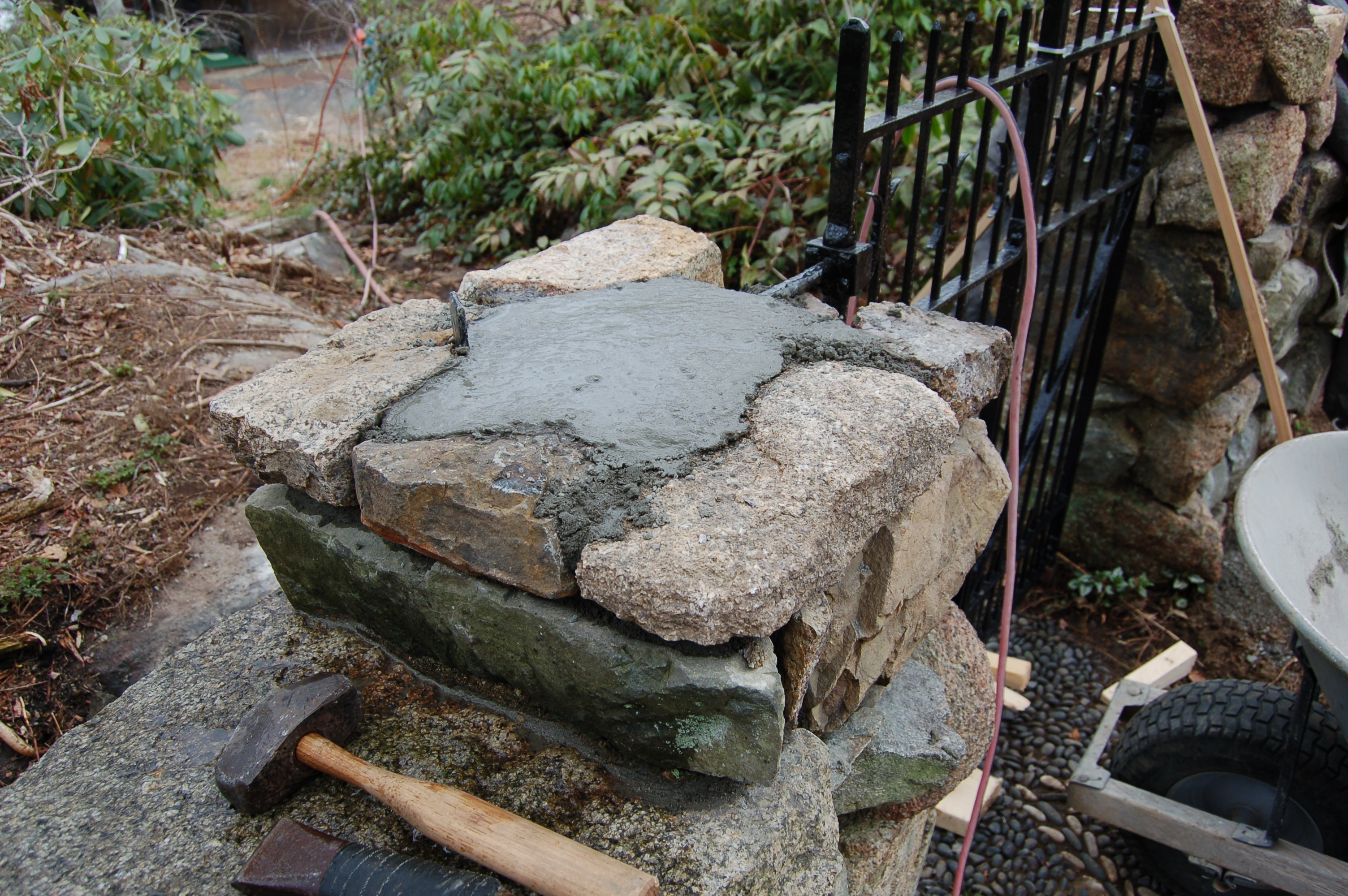 The original gates and arbors are back in place and look great! The blacksmith did a fantastic job at bending everything back to shape, restoring the hinges and painting everything. I was fearful that I would see lots of replaced metal parts or even worse, a bad attempt at reproduction. The fountain is back together and the plumbing is next.