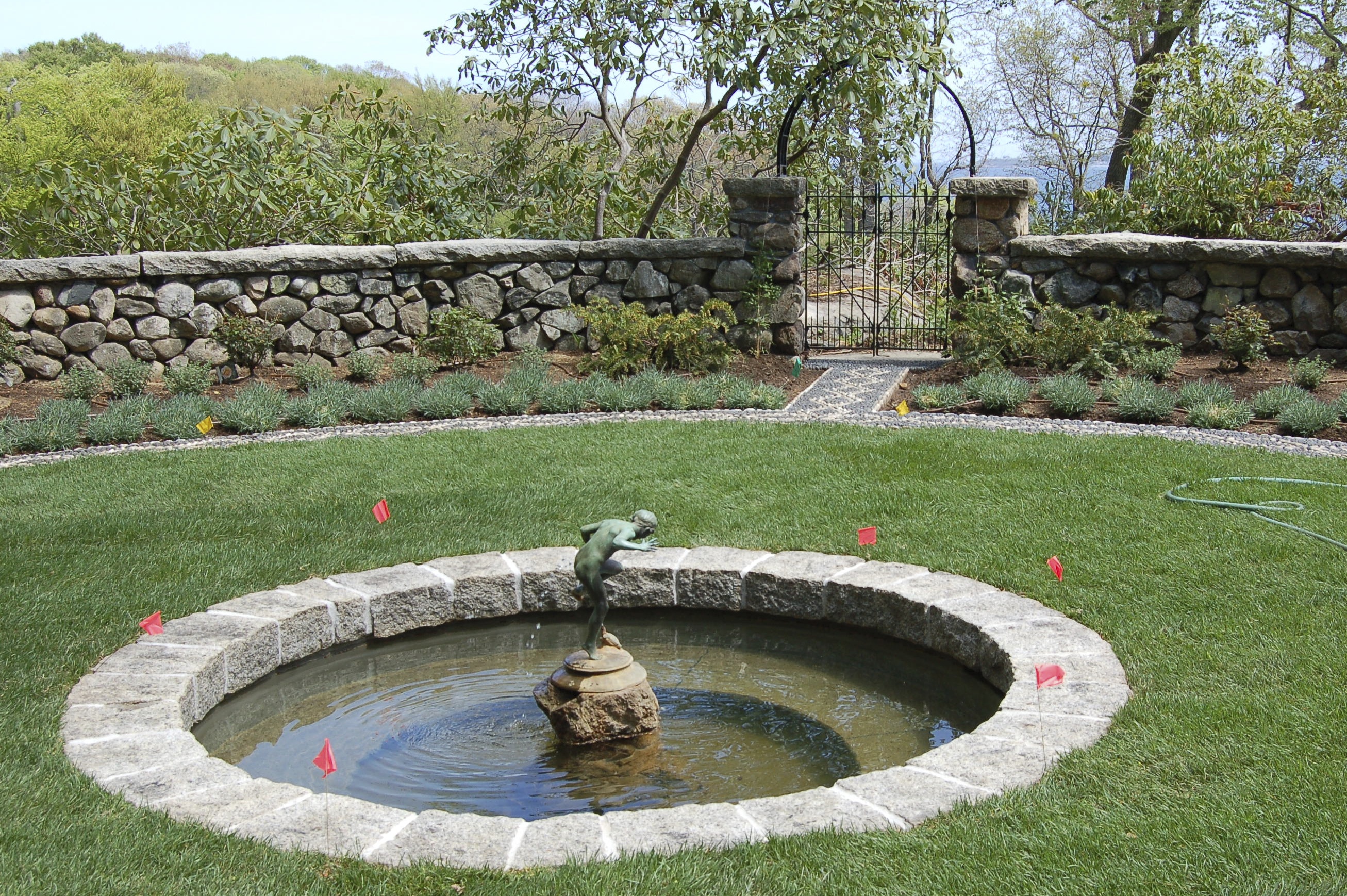 You can see the two heavy granite coping stones barely balancing on top af a wobbly stack of stone at the center. The fountain was plumbed with a continious flow of water as well. This was also converted to a recirculating system.
