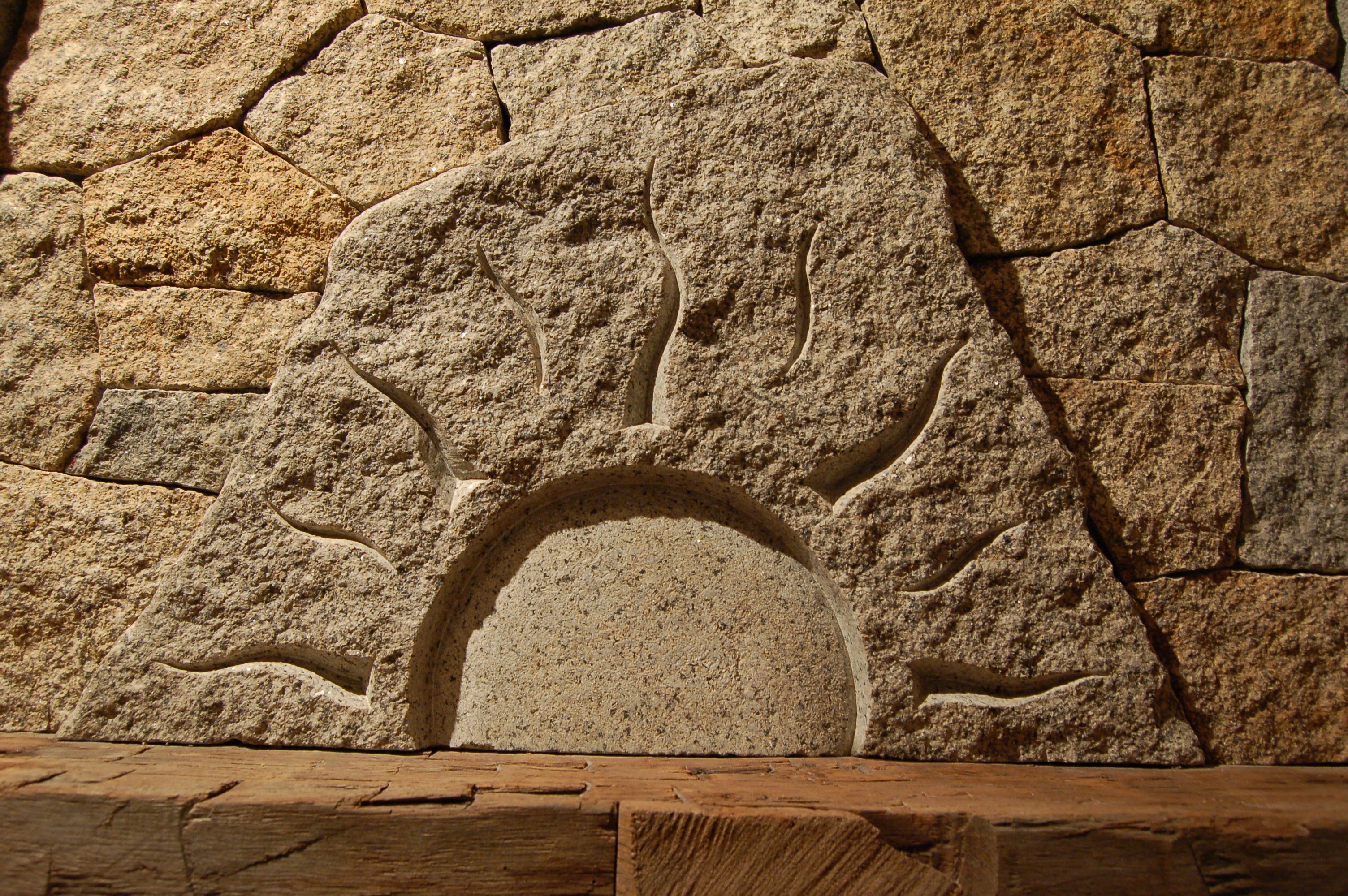 Carved granite detail over mantle