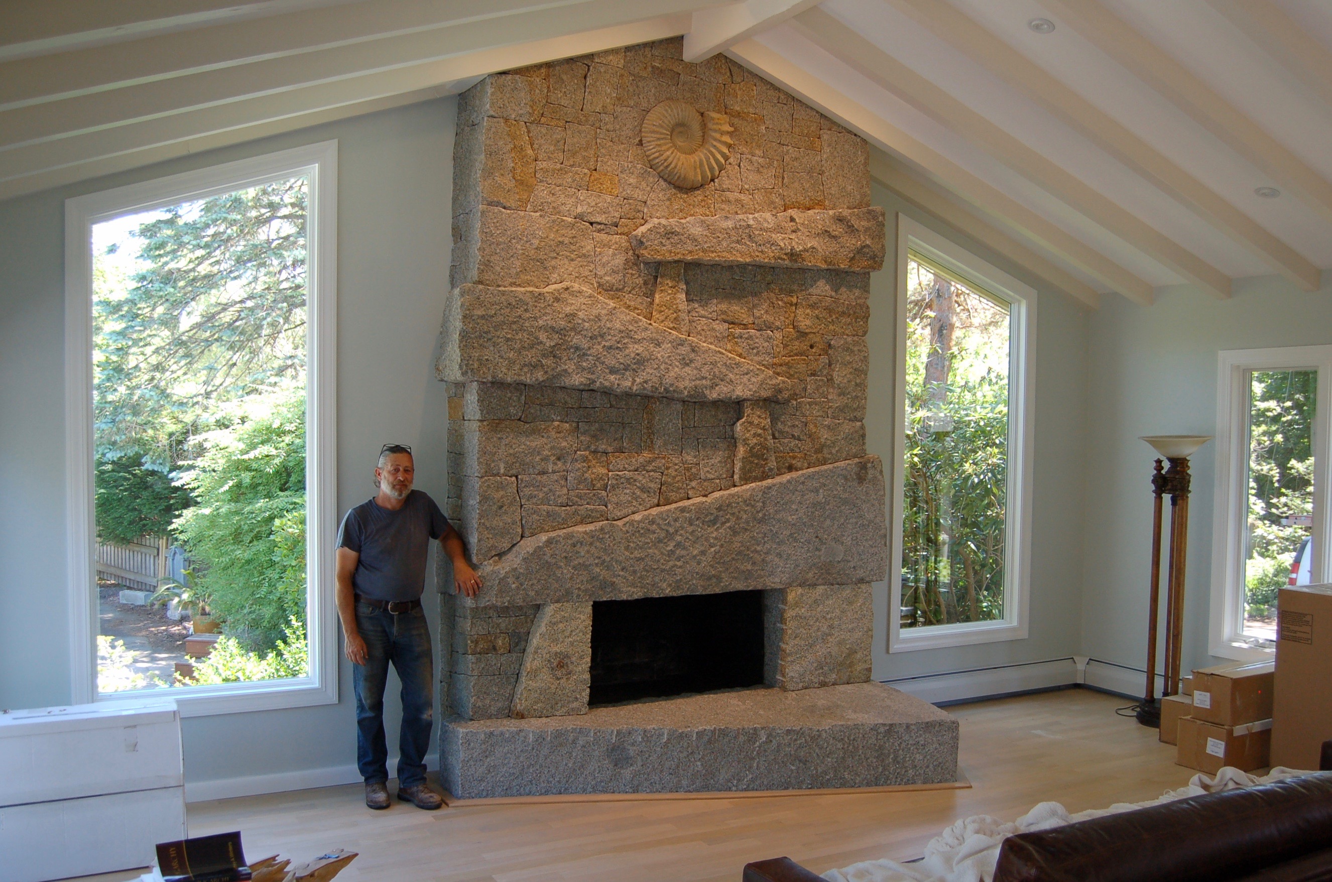 Custom Cape Ann granite fireplace in East Gloucester, MA